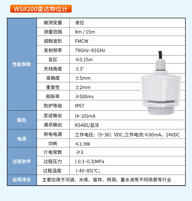 您的位置: 首頁 > 水位雷達液位計 → 聯測WSR200雷達液位計80GHz藍牙輸出