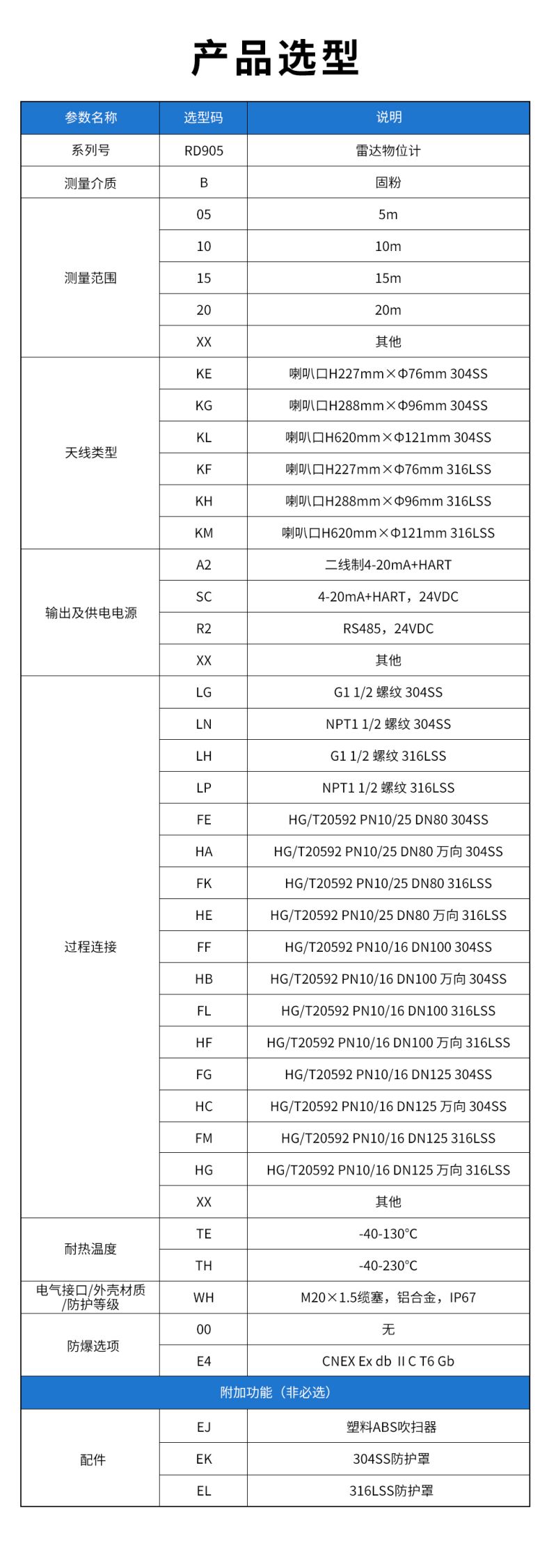 測量范圍:液體30m/固塊20m/ 固粉15m