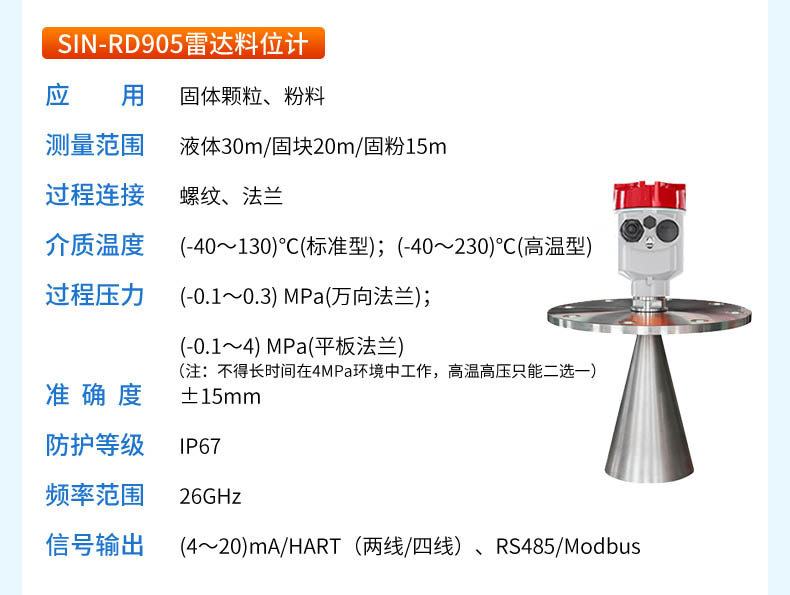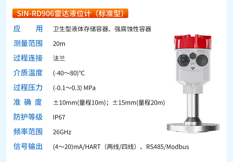 您的位置: 首頁 > 26G高頻雷達物位計 → 聯測儀表SIN-RD901雷達液位計適用于各種腐蝕的液體