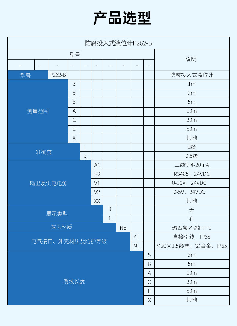 聯(lián)測儀表SIN-P262/P262-B陶瓷芯體防腐投入式液位計(jì)產(chǎn)品特點(diǎn):防腐型,密封性好,防護(hù)能力高