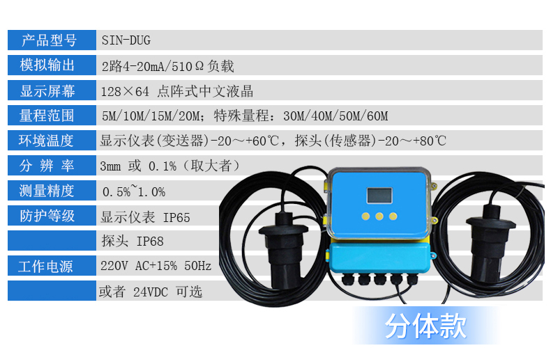 聯測儀表SIN-DUG超聲波物位差計產品特點:料位/液位兼容、分體式結構、遠程顯示