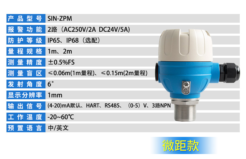 聯測儀表SIN-ZP超聲波液位/物位計產品特點:±0.3%高精度、五檔濾波,穩定測量